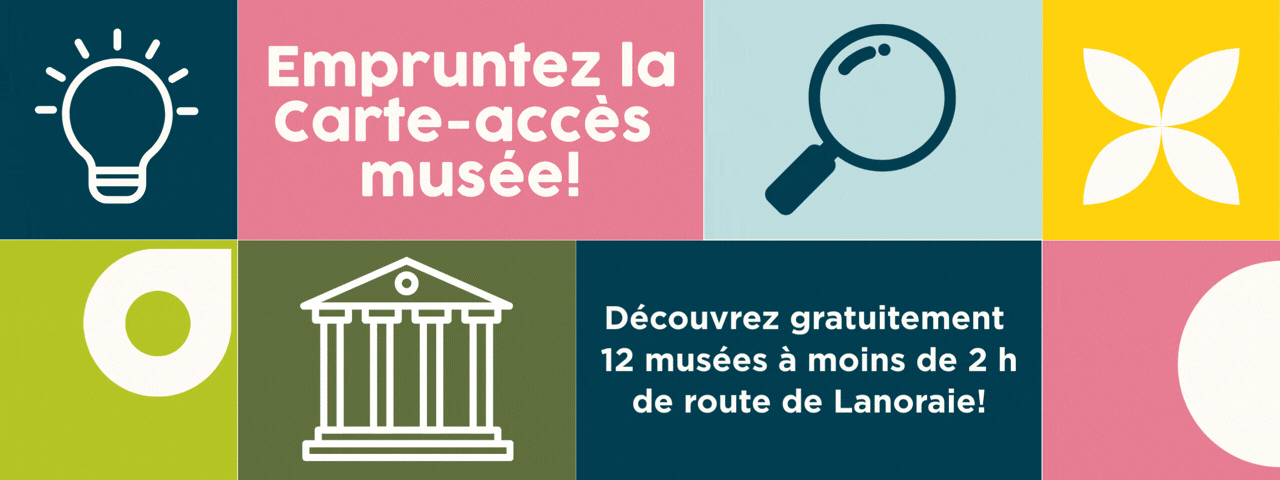 Comme un livre, la carte accès-musée se réserve et s’emprunte à la bibliothèque. Le prêt de la carte est gratuit et est valable pour 2 semaines. Elle donne accès gratuitement à une famille (2 adultes et 3 enfants) à toutes les institutions muséales participantes. Puisque l’objectif est de favoriser l’accès aux familles, la carte n’est pas valide s’il y a seulement des adultes qui se présentent au musée. La carte couvre les frais pour une famille ayant jusqu’à 3 enfants. Des frais d’entrée pour les enfants supplémentaires pourraient être chargés, selon le musée.